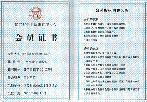 江苏省企业信用管理协会会员证书