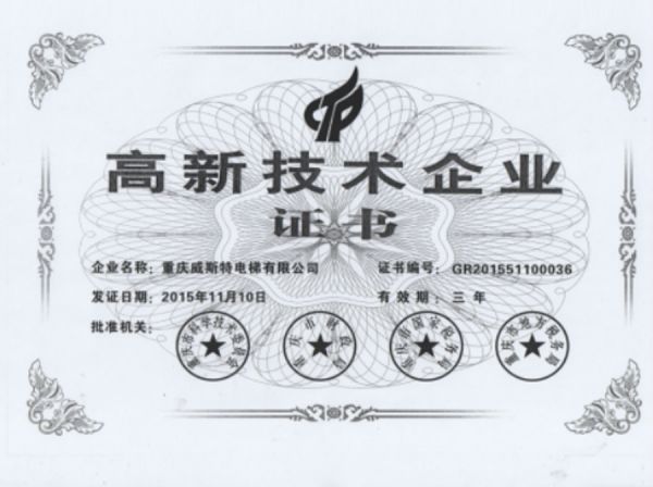高新技术企业证书
