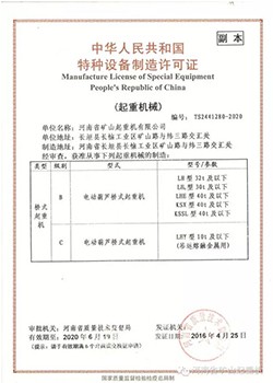电动葫芦许可证