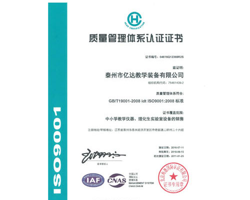 泰州市亿达教学装备有限公司是一家集中、小学教学仪器研发、生产、销售、安装、调试服务于一体的专业企业,公司注册资金5669万元,下设泰州市环溪教学仪器供应站作为销售部。我公司是中国教育装备行业协会会员单位、江苏省教育装备行业协会会员单位,并率先通过ISO9001-2008质量管理体系认证、ISO14001-2004环境管理体系认证、GB/T28001-2001职业健康安全管理体系认证。   公司起源于八十年代,经过亿达人三十多年不懈的努力与追求,我公司已发展成为一家技术力量雄厚、生产设备齐全、售后服务完善的优秀企业。公司产品销往全国各地,以品种齐全、质量上乘、按时交货和完善的售后服务赢得了用户的一致好评,并连续获得国家和省、市级相关部门授予的多项荣誉,国家级的有“全国教学设备十佳名优品牌”、“全国质量信得过产品”、“质量信誉双保障示范...... [ 查看详情 ]