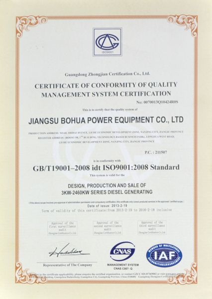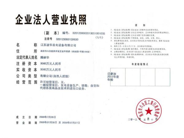 江苏波华发电设备有限公司,位于江苏省南京市。是科技导向性企业,是集交流发电机、发电机组生产、销售、租赁、配件、服务于一体的专业化生产管理型企业。公司专业生产1KW--3000KW柴油发电机组、汽油发电机组及燃气发电机组。公司技术力量雄厚,产品质量上乘,拥有现代化的生产加工成套车间,数字化的安装调试检测设备平台。 企业资质齐全,先后取得了IS09001-2008国际质量体系认证、IS014000环境认证、重合同守信用企业、江苏省产品质量稳定企业、华东地区机电产品领军企业、自理报关自营出口许可证、信息产业部入网许可证等。 波华电力依靠良好的商业信誉和发展潜力,与国内外知名引擎制造商及发电机制造商建立了长期友好的合作关系。并在全国各省会城市和主要用户集中地均设有特约销售、维修服务站,现已实行全国联保,已为两万余用...... [ 查看详情 ]